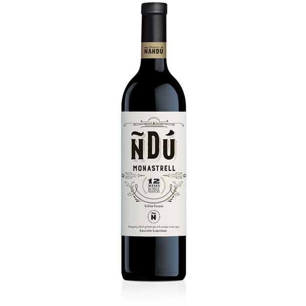 Ñdú edición limitada monastrell está elaborado 100% con cepas de monastrell de más de 40 años de edad ubicadas en una pequeña parcela cerca del Valle de Vinalopó a una altitud media de 550 mtr., sobre terreno franco y ligeramente salino. El Monastrell se vendimia a mano procedente de viñas en vaso con bajos rendimientos con una crianza mínima de 12 meses en barricas de roble francés de segundo y tercer año.