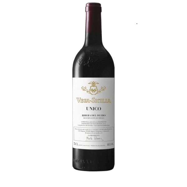 Vega Sicilia Único elaborado por Bodegas Vega Sicilia con uva Tempranillo 94% y Cabernet Sauvignon 6%. Ha tenido una larguisima crianza durante más de seis años en barrica de roble americano y francés de 225 litros y toneles de 20.000 litros de capacidad y posteriormente un reposo mínimo de 5 años en botella. Es un auténtico vino de culto, todo un lujo.